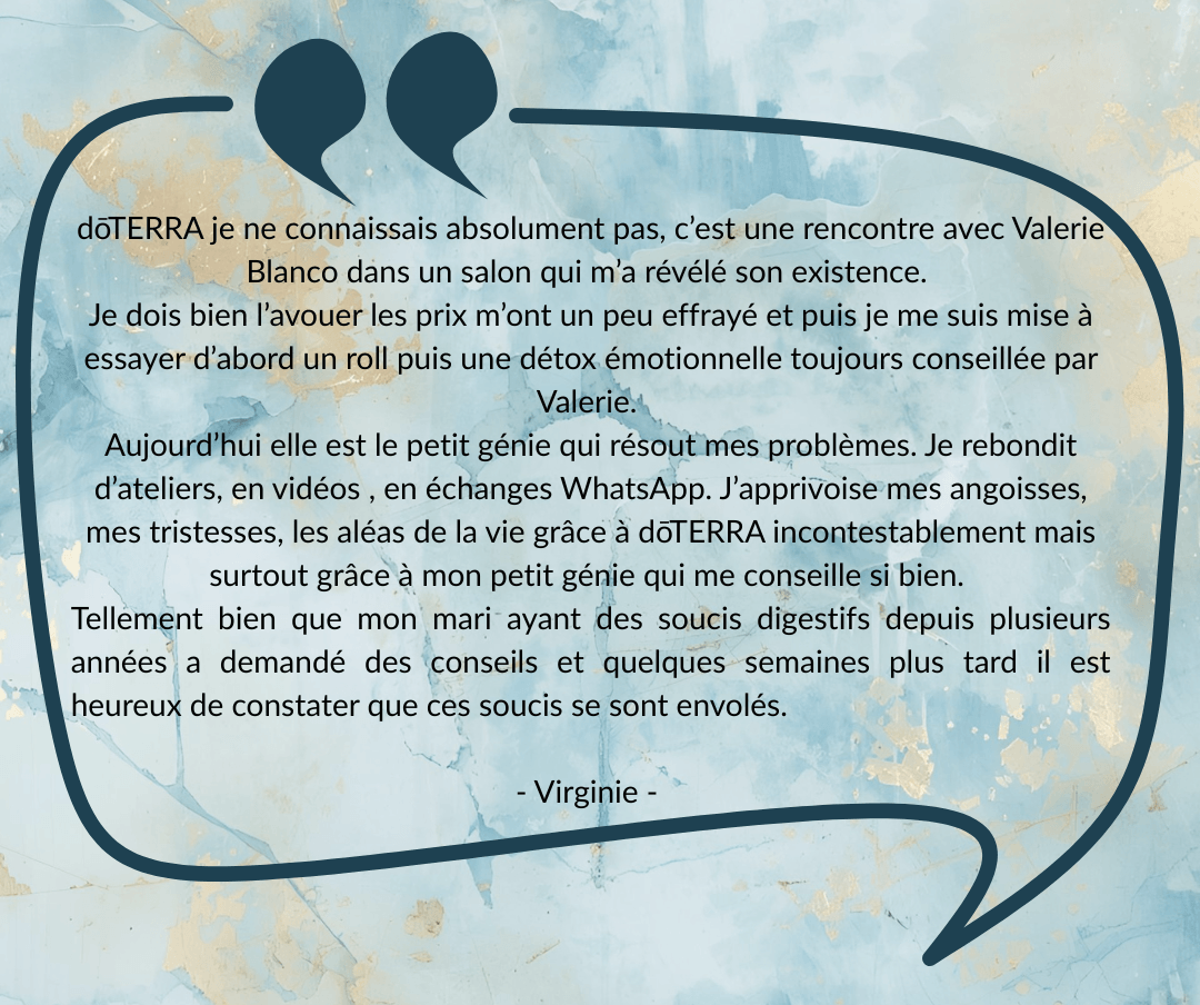 Les huiles essentielles sont mes alliées, mais ce qui m’anime vraiment, c’est de te voir t’épanouir, te recentrer et reprendre confiance en ta capacité à créer une vie qui te ressemble.