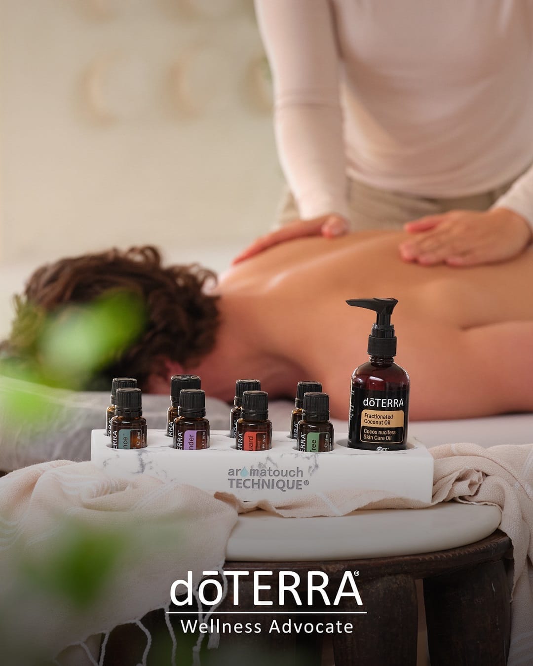 🌿 Une compétence à forte valeur ajoutée : tu apprendras à pratiquer la technique AromaTouch™ de manière efficace et sécurisée, selon le protocole développé par le Dr David Hill, co-fondateur de doTERRA.